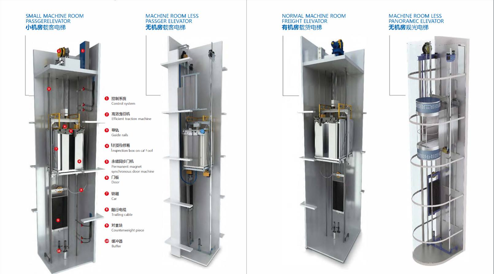 The elevator machinery is not of the hydraulic type1. Elevators were beginning to start down the trajectory of widespread usage. And the machine room elevator because the machine room occupies a large space it will also destroy the style of the building so the aesthetics is slightly worse.